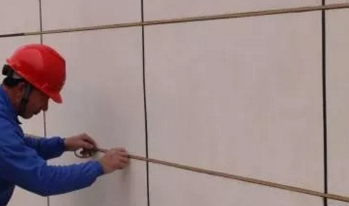 膩子施工完,涂刷抗堿封閉底漆后,可進行分格縫工序。根據設計的分格大小,用彈線的方式在墻面上畫分格。